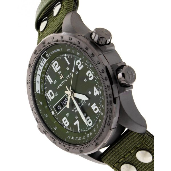 L’eleganza e la precisione dell’orologio da uomo Hamilton Khaki Aviation X – Wind Auto si fondono in un connubio perfetto di stile e funzionalitร . Con cassa in acciaio dal diametro di 45mm e quadrante verde con numeri Arabic Numerals, questo modello incarna l’essenza dell’aviazione. Il movimento automatico H-30 assicura una carica affidabile, mentre il vetro zaffiro e la resistenza all’acqua fino a 10 bar garantiscono durata e affidabilitร . Il cinturino in tessile verde si abbina perfettamente alla cassa e alla lunetta in acciaio con finitura marrone, conferendo un tocco di classe senza tempo. Un pezzo unico che unisce tradizione e innovazione, perfetto per gli amanti degli orologi di alta gamma.
