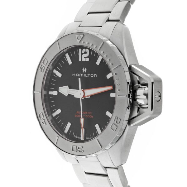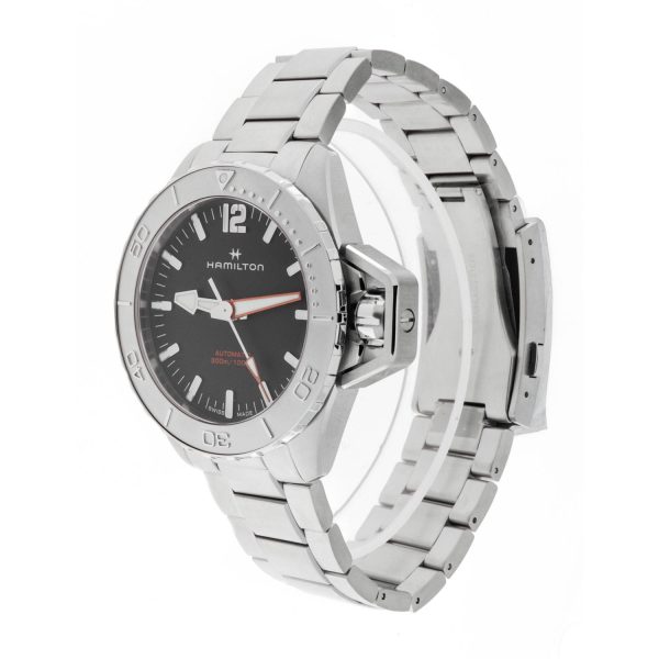 L’orologio da uomo Hamilton H77815130 della collezione Khaki Navy rappresenta l’incontro perfetto tra eleganza e tecnologia. Dotato di un movimento automatico di alta precisione, questo modello vanta una cassa in acciaio dal diametro di 46mm, caratterizzata da un design sportivo e raffinato. Il quadrante nero, abbinato al cinturino e alla chiusura deployante in acciaio, conferisce un’aura di sobria raffinatezza a questo orologio, garantendo un look versatile adatto ad ogni occasione. Resistente all’acqua fino a 300 metri di profondità, grazie al vetro zaffiro e alla lunetta in acciaio, questo orologio è un compagno affidabile per gli amanti dello stile senza tempo e delle prestazioni di alta gamma.
