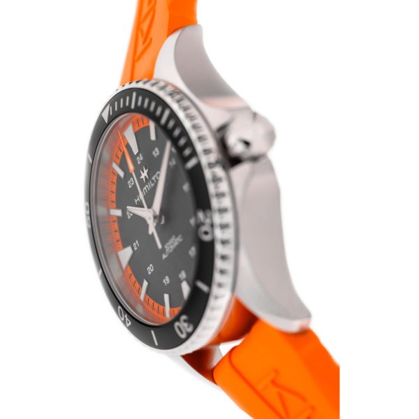 L’orologio meccanico HAMILTON H82395331 della collezione Khaki Navy incarna l’eleganza e la precisione svizzera che contraddistinguono il brand. Con una cassa in acciaio di 40 mm e un quadrante nero dallo stile deciso, questo modello si distingue per il cinturino in gomma arancione che conferisce un tocco di originalitร  e sportivitร . La chiusura ad ardiglione in acciaio garantisce una perfetta aderenza al polso, mentre il vetro zaffiro e la resistenza all’acqua fino a 100 metri testimoniano la qualitร  e la robustezza del prodotto. Il calibro H-10 garantisce prestazioni impeccabili nel tempo, rendendo questo orologio un’icona di stile per l’uomo contemporaneo che ricerca un accessorio di classe e affidabile per ogni occasione.