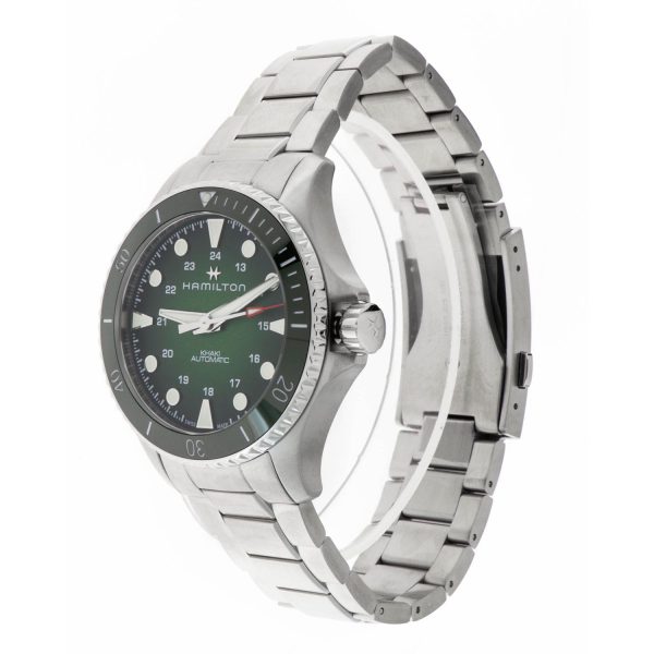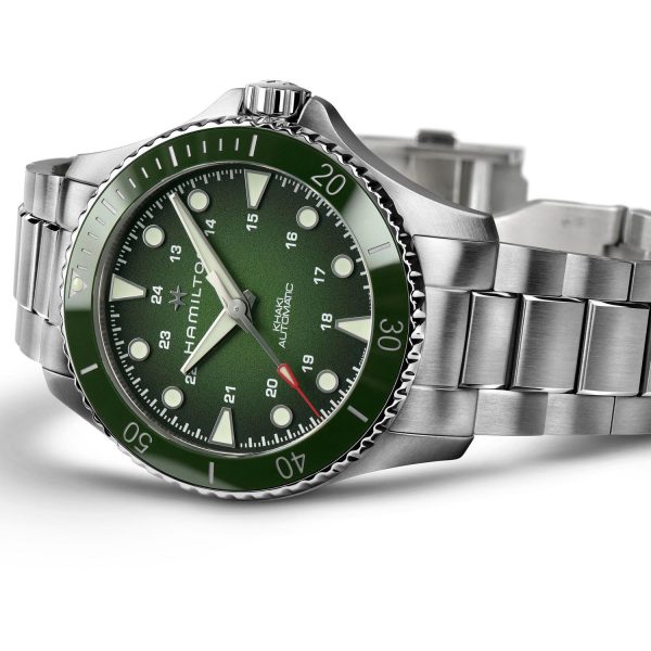 L’orologio Hamilton Khaki Navy Scuba Auto Carica automatica รจ un’eccellenza di design e prestazioni per gli amanti dell’eleganza sportiva. Caratterizzato da una resistenza all’acqua fino a 30 bar (300m), presenta un vetro zaffiro e una lunetta in ceramica che ne esaltano la robustezza. Il movimento automatico calibro H-10 garantisce affidabilitร e precisione nel tempo, mentre il quadrante verde conferisce un tocco di originalitร . Realizzato in acciaio, il cinturino e la chiusura a fibbia pieghevole assicurano comfort e sicurezza. Con un diametro di cassa di 43mm e un’altezza di 12.58mm, questo modello Hamilton unisce stile e funzionalitร in un’icona di classe e tecnologia orologiera.