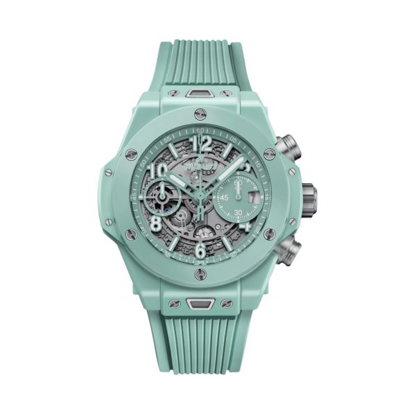 L’orologio da uomo HUBLOT – 441.GS.5221.RX – BIG BANG UNICO MINT GREEN CERAMIC 42 MM incarna l’eccellenza e l’innovazione che contraddistinguono il marchio Hublot. Con una cassa in ceramica di alta qualità e un quadrante scheletrato, questo orologio automatico combina design distintivo e prestazioni impeccabili. Il cinturino in caucciù assicura un comfort superiore, mentre il vetro zaffiro garantisce resistenza e durata nel tempo. Con una resistenza all’acqua fino a 10 ATM, questo modello rappresenta un’opera d’arte tecnologica e un simbolo di stile senza tempo. Perfetto per gli uomini che cercano un orologio di lusso dal carattere unico e raffinato.