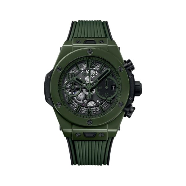L’orologio da uomo HUBLOT 441.GX.5210.RX della collezione BIG BANG UNICO DARK GREEN CERAMIC 42 MM incarna l’eccellenza e l’innovazione che contraddistinguono il marchio svizzero. Con una cassa in ceramica verde scuro di 42 mm e un quadrante scheletrato, questo modello automatico combina design distintivo e prestazioni di alto livello. Il cinturino in caucciù conferisce comfort e resistenza, mentre il vetro zaffiro garantisce una durata superiore nel tempo. Impermeabile fino a 10 ATM, è un connubio di stile e funzionalità ideale per l’uomo moderno che apprezza l’eleganza senza tempo. La chiusura Deployant assicura una vestibilità sicura e confortevole, mentre il numero di referenza 441.GX.5210.RX ne sottolinea l’autenticità e l’esclusività. Un’opera d’arte da polso che si distingue per la sua raffinatezza