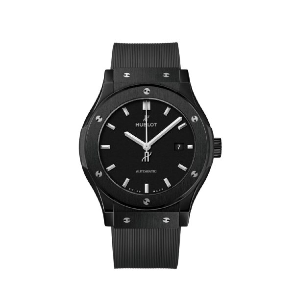 L’orologio da uomo HUBLOT 542.CM.1171.RX della collezione Classic Fusion Black Magic incarna l’eleganza e la maestria artigianale distintive del marchio. Dotato di movimento automatico HUB1110 e cassa in ceramica nera di 42 mm, questo modello rappresenta un connubio perfetto tra design sofisticato e prestazioni affidabili. Il quadrante nero senza numeri, il vetro zaffiro e il cinturino in gomma nera conferiscono un tocco di modernità e sportività, mentre la chiusura déployante in acciaio nero assicura una perfetta vestibilità. Resistente all’acqua fino a 5 ATM, questo orologio rappresenta un’opzione ideale per l’uomo contemporaneo che ricerca un accessorio di lusso versatile e di alta qualità.