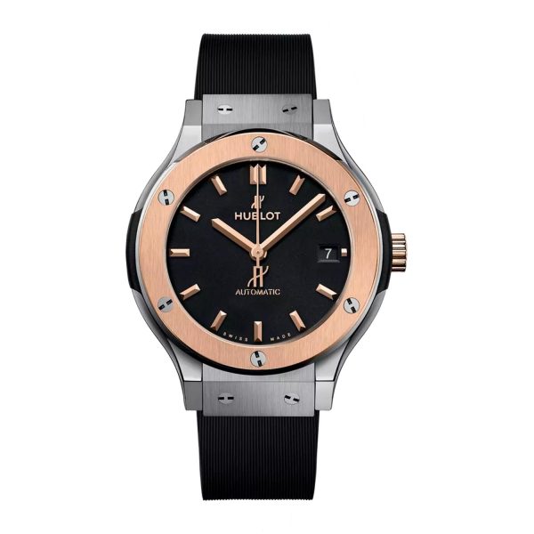 L’orologio da uomo HUBLOT Classic Fusion Titanium King Gold 38 mm, referenziato come 565.NO.1480.RX, incarna l’eccellenza dell’artigianato svizzero e l’innovazione tecnologica distintiva del marchio. Caratterizzato da una cassa in titanio e cinturino in caucciù, questo modello unisce materiali di alta qualità con un design raffinato e contemporaneo. Con un diametro di 38 mm, il quadrante nero in contrasto con i dettagli in oro rosa conferisce un’eleganza senza tempo. Resistente all’acqua fino a 5 ATM e dotato di vetro zaffiro, questo orologio è un connubio di prestazioni impeccabili e stile sofisticato. Ideale per chi ricerca un accessorio di classe e prestigio, questo HUBLOT Classic Fusion è un’autentica espressione di lusso e raffinatezza.