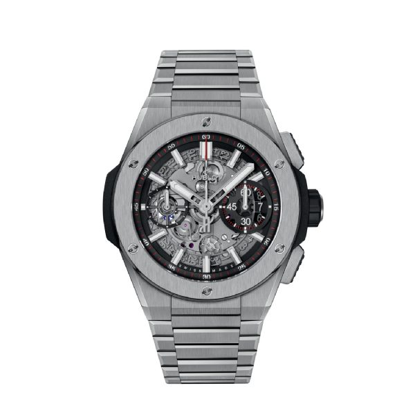 L’orologio da uomo Hublot 451.NX.1170.NX della collezione BIG BANG INTEGRATED TITANIUM è un’eccellenza tecnologica e di design che incarna l’eleganza distintiva del marchio. Dotato di un movimento automatico di precisione calibro HUB1280 UNICO Manufacture Self-winding Chronograph, questo orologio vanta una cassa in titanio leggera e resistente, con un diametro di 42 mm e una resistenza all’acqua fino a 10 ATM. Il quadrante trasparente, privo di numeri, è protetto da vetro zaffiro antigraffio e la lunetta in titanio conferisce un tocco di raffinatezza. Il cinturino in titanio grigio con chiusura Déployante completa l’estetica moderna e sofisticata di questo capolavoro orologiero. Con un design innovativo e materiali di alta qualità, l’orologio Hublot 451.NX.1170.NX si distingue per la sua fusione tra prestazioni impecc
