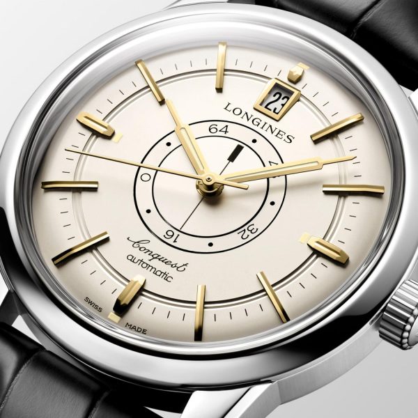 Esplora l’eleganza senza tempo con il LONGINES Conquest Heritage Central Power Reserve. Un’iconica creazione che incarna l’artigianalitร e l’eccellenza svizzera di Longines. Dotato di movimento automatico calibro L896, questo orologio da uomo offre un design raffinato con quadrante avorio opalino, cassa in acciaio e cinturino in pelle nera. La cassa da 38.00 mm di diametro e 12.30 mm di altezza conferisce una presenza distintiva, mentre il vetro zaffiro e la resistenza all’acqua fino a 5 bar garantiscono durata e affidabilitร . Completo di numeri arabi sul quadrante e chiusura a fibbia in acciaio, il LONGINES Conquest Heritage Central Power Reserve รจ un’opzione di prestigio per chi apprezza l’estetica classica e le prestazioni impeccabili.