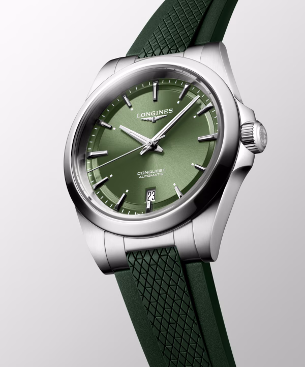 Esplora l’eleganza intramontabile del Longines Conquest, referenza L3.720.4.02.9, un orologio da uomo che incarna l’eccellenza e la precisione artigianale del marchio svizzero. Dotato di movimento al quarzo di alta qualità calibro L888, questo orologio vanta un design sofisticato e raffinato, con un quadrante sunray verde che cattura l’attenzione. La cassa in acciaio, con un diametro di 38.00 mm e un’altezza di 10.90 mm, si abbina perfettamente al cinturino in caucciù per un comfort ottimale. Resistente all’acqua fino a 10 bar e con vetro zaffiro antigraffio, il Longines Conquest unisce stile e funzionalità in un unicum di prestigio. Completo di chiusura con doppia deployante di sicurezza e sistema di microregolazione, questo orologio rappresenta un’opzione di classe per chi cerca un accessor