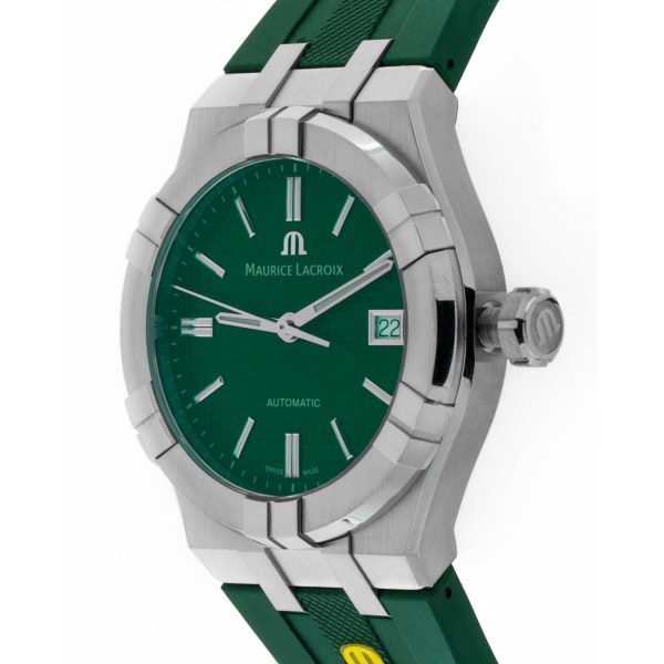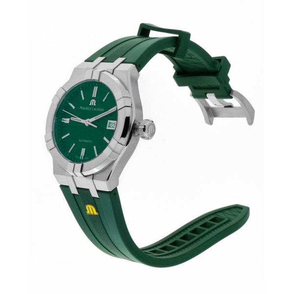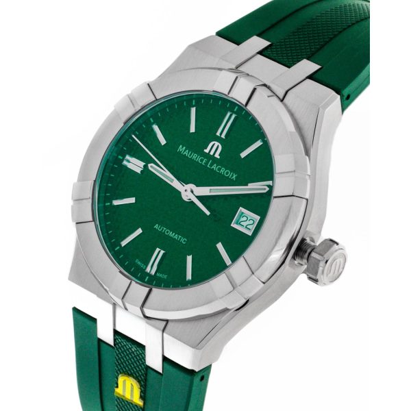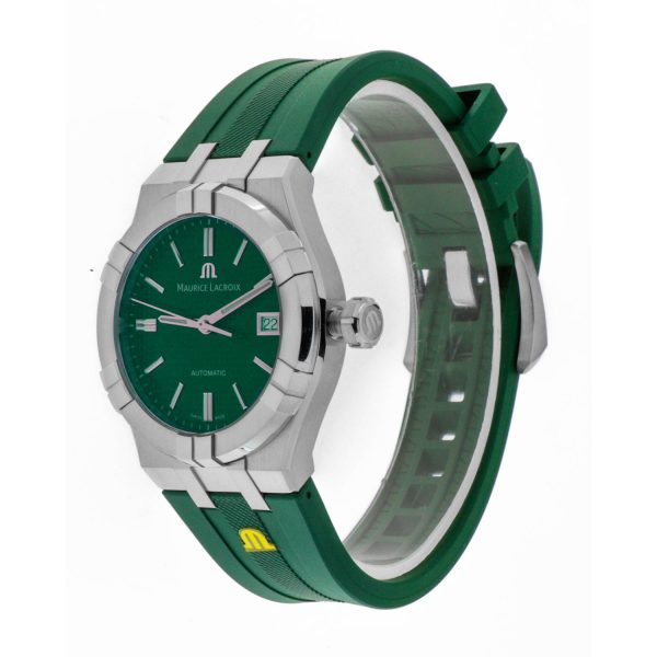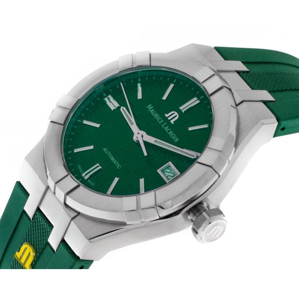 L’orologio da uomo Maurice Lacroix AIKON Automatic 39mm incarna l’eleganza e la precisione artigianale che contraddistinguono il marchio svizzero. Dotato di un movimento automatico ML115 di alta qualità, questo modello vanta una cassa in acciaio dal diametro di 39mm e una resistenza all’acqua fino a 20 ATM, garantendo durata e affidabilità nel tempo. Il quadrante verde effetto soleil con decorazioni Clous de Paris conferisce un tocco di raffinatezza, mentre il cinturino in caucciù verde assicura comfort e stile. Un’opera d’arte da polso che unisce design moderno e prestazioni impeccabili, perfetta per l’uomo che apprezza la perfezione in ogni dettaglio.