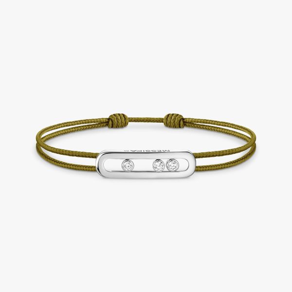 Il bracciale Messika CARE(S) Khaki Cord rappresenta un’incantevole fusione tra eleganza e modernità, incarnando alla perfezione l’inconfondibile stile del brand. Realizzato in pregiato oro bianco, questo gioiello rivela un design raffinato e un’eccellente cura dei dettagli, confermando l’artigianalità di altissimo livello che contraddistingue Messika. Il contrasto tra la sofisticata corda khaki e il luminoso oro bianco conferisce al bracciale un’aura di esclusività e raffinatezza, rendendolo un accessorio perfetto per valorizzare qualsiasi outfit con un tocco di lusso senza tempo. Un capolavoro di design che celebra l’essenza della femminilità e dell’eleganza contemporanea, destinato a conquistare gli animi delle donne più raffinate e sofisticate.
