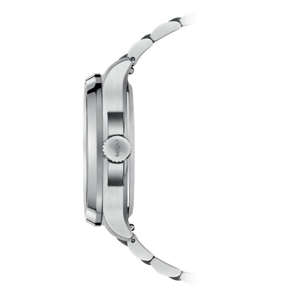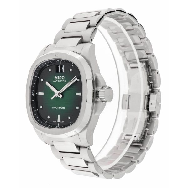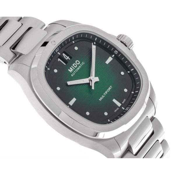 L’orologio da uomo MIDO M049.526.11.091.00 della collezione Multifort TV Big Date incarna l’eleganza e la precisione tipiche del marchio. Dotato di movimento automatico Mido Kaliber 80, questo orologio vanta un quadrante verde senza numeri, valorizzato da un vetro zaffiro resistente ai graffi. La cassa in acciaio con diametro di 40 mm e chiusura deployante, abbinata a un cinturino grigio in acciaio, conferisce un tocco di raffinatezza e robustezza. Impermeabile fino a 10 bar, รจ ideale per l’uomo moderno che apprezza l’arte dell’orologeria di alta qualitร . Con il suo design sofisticato e le 25 pietre incastonate, questo orologio MIDO rappresenta un’aggiunta pregiata alla collezione di ogni appassionato di orologi di lusso.