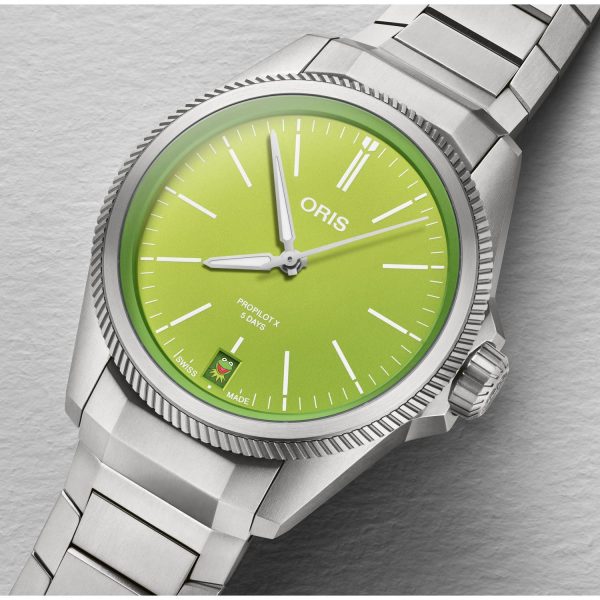 L’Oris ProPilot X Kermit Edition incarna l’eccellenza e l’innovazione di un marchio iconico nel mondo degli orologi di lusso. Caratterizzato da un quadrante verde accattivante e una cassa in titanio, questo orologio da uomo rappresenta un connubio perfetto tra design e prestazioni. Dotato di movimento automatico di precisione Calibro 400 e vetro zaffiro resistente ai graffi, garantisce affidabilità e durata nel tempo. La chiusura Déployante in acciaio e il cinturino in titanio conferiscono un tocco di eleganza e comfort al polso. Impermeabile fino a 10 bar, è l’accessorio ideale per l’uomo moderno che apprezza lo stile e la qualità senza compromessi. Con la sua esclusiva edizione Kermit, questo orologio si distingue per il suo design unico e l’attenzione ai dettagli, confermando il prestigio e la raffinatezza della collezione Oris.