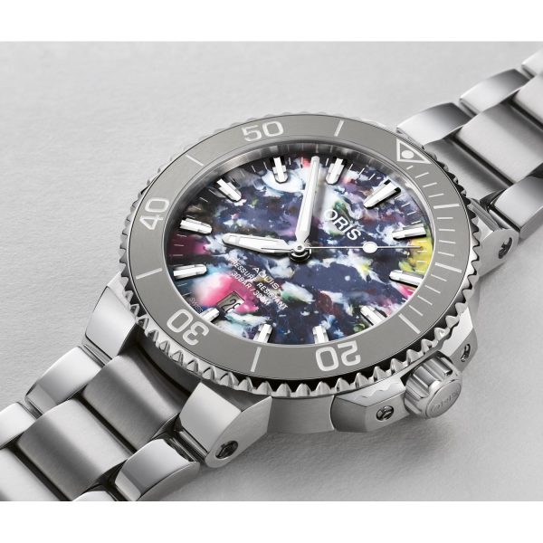 L’elegante orologio sportivo Oris Aquis Date della referenza 73377664150-SET rappresenta un connubio perfetto tra prestazioni tecniche e design raffinato. Caratterizzato da una cassa in acciaio dal diametro di 41.50 mm, questo modello si distingue per il quadrante multicolore senza numeri, che conferisce un tocco di modernità ed esclusività. Il movimento automatico di precisione, il vetro zaffiro anti-riflesso e la resistenza all’acqua fino a 30 bar garantiscono prestazioni impeccabili in qualsiasi situazione. Il cinturino in acciaio con chiusura deployante assicura comodità e sicurezza al polso, mentre la lunetta in ceramica aggiunge un tocco di eleganza. Un orologio di prestigio, ideale per gli amanti degli orologi di alta gamma.