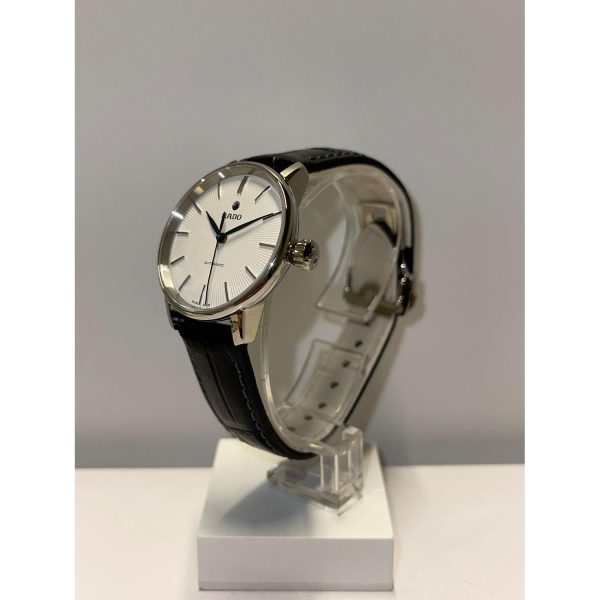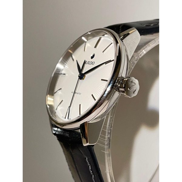 L’orologio da uomo Rado – R22862045 della collezione Classic S Coupole incarna l’eleganza e la precisione che contraddistinguono il marchio svizzero. Con cassa in acciaio dal diametro di 31.8 mm e un raffinato quadrante bianco privo di numeri, si distingue per il suo stile sofisticato e senza tempo. Il movimento automatico Rado Caliber 561 garantisce prestazioni impeccabili, mentre il vetro zaffiro e la resistenza all’acqua fino a 5 Bar assicurano durata e affidabilitร . Il cinturino in pelle nera e la chiusura deployante in acciaio completano l’orologio con un tocco di raffinatezza. Un’opera d’arte da polso che si distingue per la sua maestria artigianale e la qualitร dei materiali utilizzati, ideale per gli amanti dell’eccellenza e dello stile senza tempo.