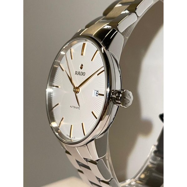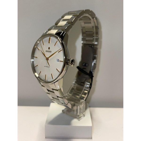 L’orologio da uomo Rado Coupole Classic Automatic, referenza R22860023, incarna l’eleganza senza tempo del marchio svizzero Rado. Con cassa e cinturino in acciaio dal design raffinato, questo modello presenta un quadrante argento senza numeri, impreziosito dal resistente vetro zaffiro. Dotato di movimento automatico Caliber 763 (ETA C07.611), offre prestazioni affidabili e precise. Con una resistenza all’acqua di 5 ATM e una chiusura déployante in titanio, questo orologio unisce stile e funzionalità in un equilibrio perfetto. Un’icona di classe per l’uomo contemporaneo che apprezza l’artigianato e l’estetica senza tempo.