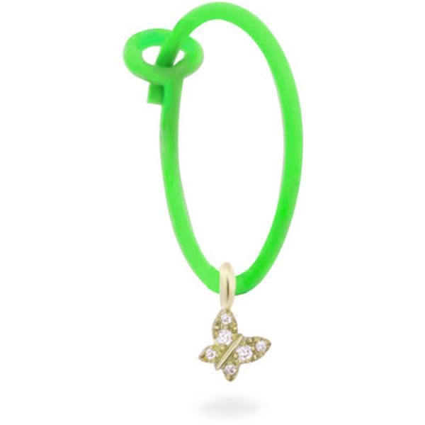 Esclusivo e raffinato, l’orecchino farfalla hoop della collezione RUE DES MILLE incanta con la sua eleganza senza tempo. Realizzato in pregiato oro 18kt, il design audace e femminile si distingue per la sua moderna interpretazione. Il verde fluo accattivante si fonde armoniosamente con i diamanti lab grown, conferendo un tocco di luce e brillantezza unica. Un gioiello che cattura lo sguardo e si distingue per la sua originalitร , perfetto per una donna che ama distinguersi con classe e stile. Un must-have per chi ricerca l’eccellenza in ogni dettaglio.