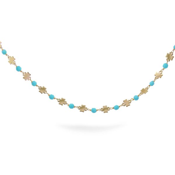 Esalta la tua eleganza e raffinatezza con la collana Rue Des Mille GR016AM4AU. Un capolavoro di gioielleria che incanta per la sua sofisticata lavorazione artigianale e il design esclusivo. Realizzata in pregiato argento, questa collana girocollo incatenato è impreziosita da delicati quadrifogli e pietre turchese, simbolo di fortuna e protezione. Un accessorio unico, firmato Rue Des Mille, che conferisce un tocco di classe e stile ad ogni outfit. Per chi ricerca l’eccellenza in ogni dettaglio, questa creazione Io&Ro incarna l’essenza della bellezza senza tempo.
