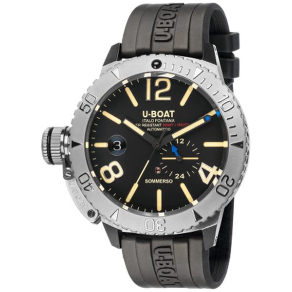 L’orologio da uomo U-Boat U.9007/A della collezione SOMMERSO/A incarna l’eleganza e la maestria artigianale distintiva del marchio U-Boat. Con una cassa in acciaio dal diametro di 46 mm e un quadrante nero impreziosito da numeri arabici, questo orologio automatico si distingue per la sua robustezza e precisione. Il cinturino in gomma nera conferisce un tocco sportivo e contemporaneo, mentre la resistenza all’acqua fino a 30 ATM lo rende ideale per le avventure subacquee. Il vetro zaffiro e la chiusura in acciaio sottolineano la qualitร dei materiali impiegati, garantendo durata e affidabilitร nel tempo. Un’opzione sofisticata per gli amanti dell’orologeria di alta gamma, il modello U.9007/A si distingue per il suo design distintivo e la sua precisione meccanica.